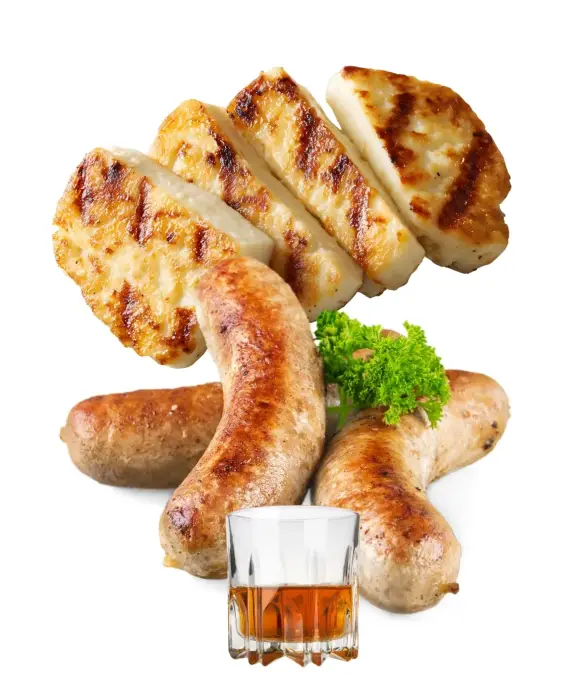 Chicken or pork served.